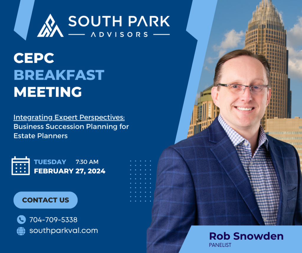 Rob Snowden Joins Panel Discussion Hosted by Charlotte Estate Planning Council to Discuss Business Succession Planning - South Park Advisors